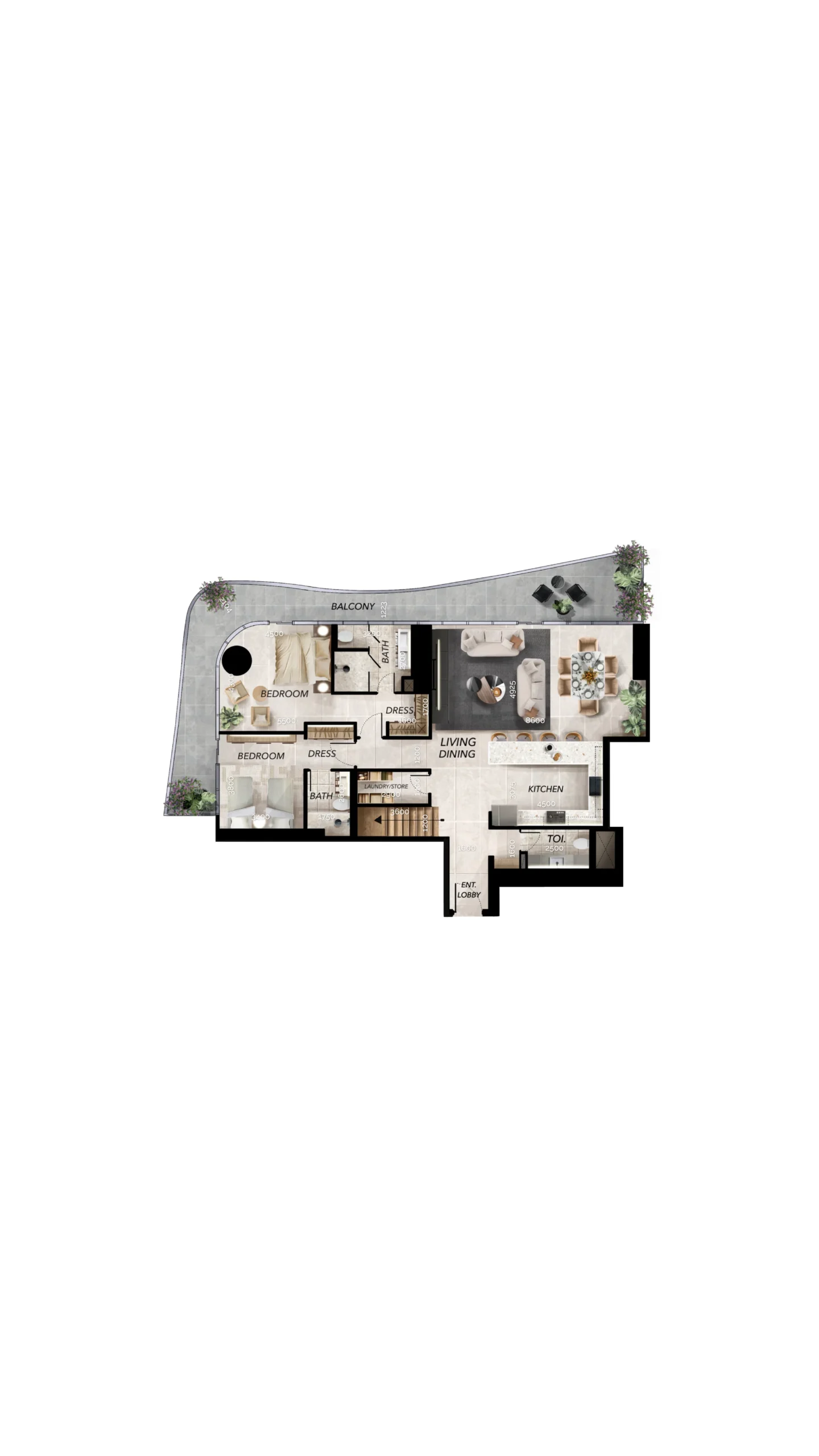 Explore interactive floorplans for every unit type, showcasing intuitive layouts, deep balconies, and the high-end finishes that define Radiant Bridges Towers.
